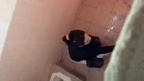 Woman spied in toilets taking a pee