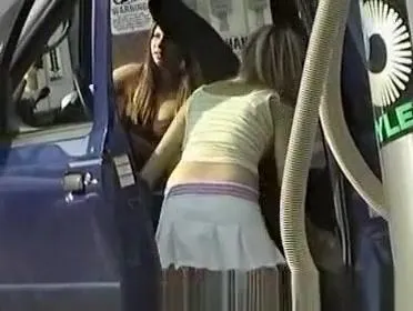 Cleaning the car wearing tight black pants