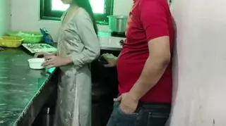 Almost Caught, Cheating Maid While Cooking In The Kitchen