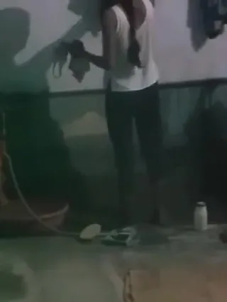 South Indian Maid Cleaning Bathroom