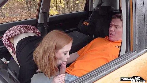 Angry brit riding driving instructor in car